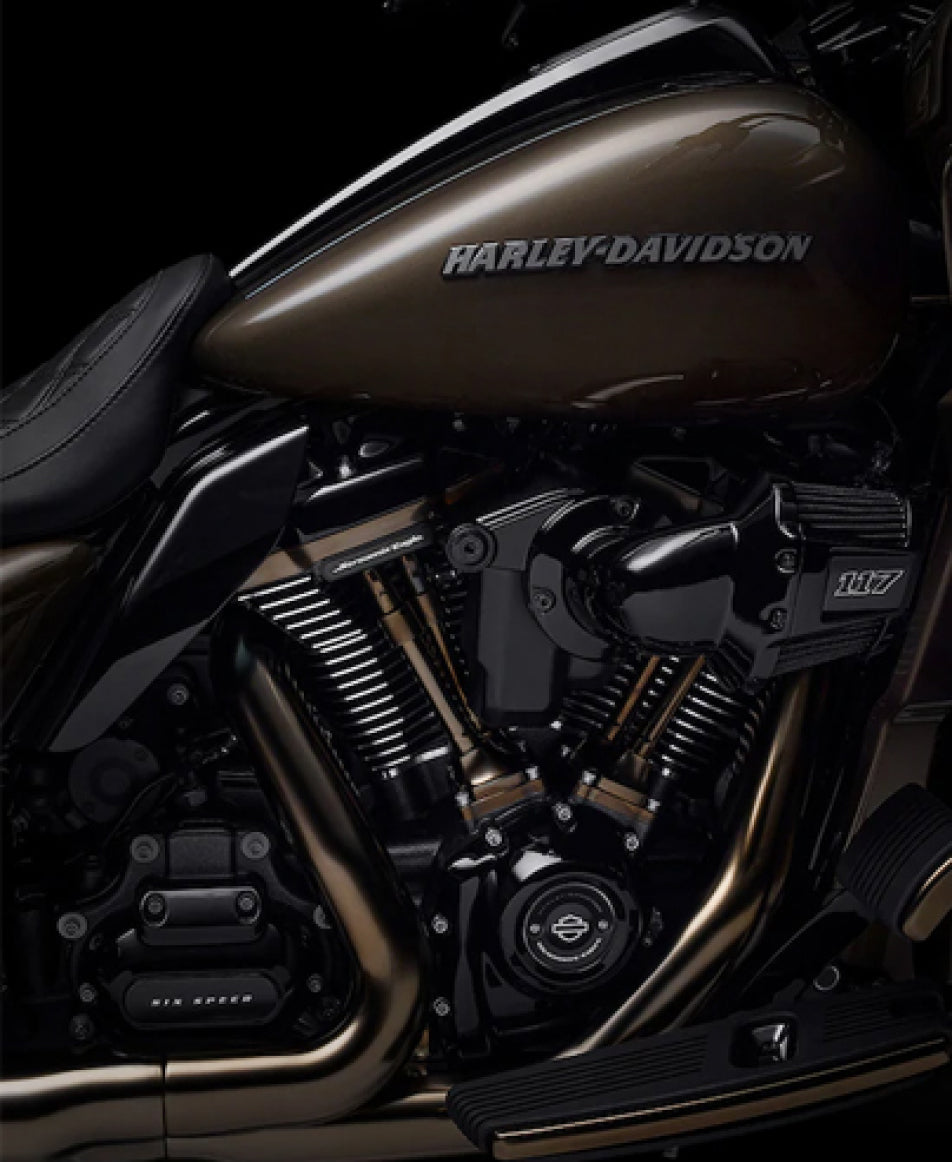Milwaukee-Eight™117 V-Twin engine and Gloss Black and contrast Chrome combo wheels