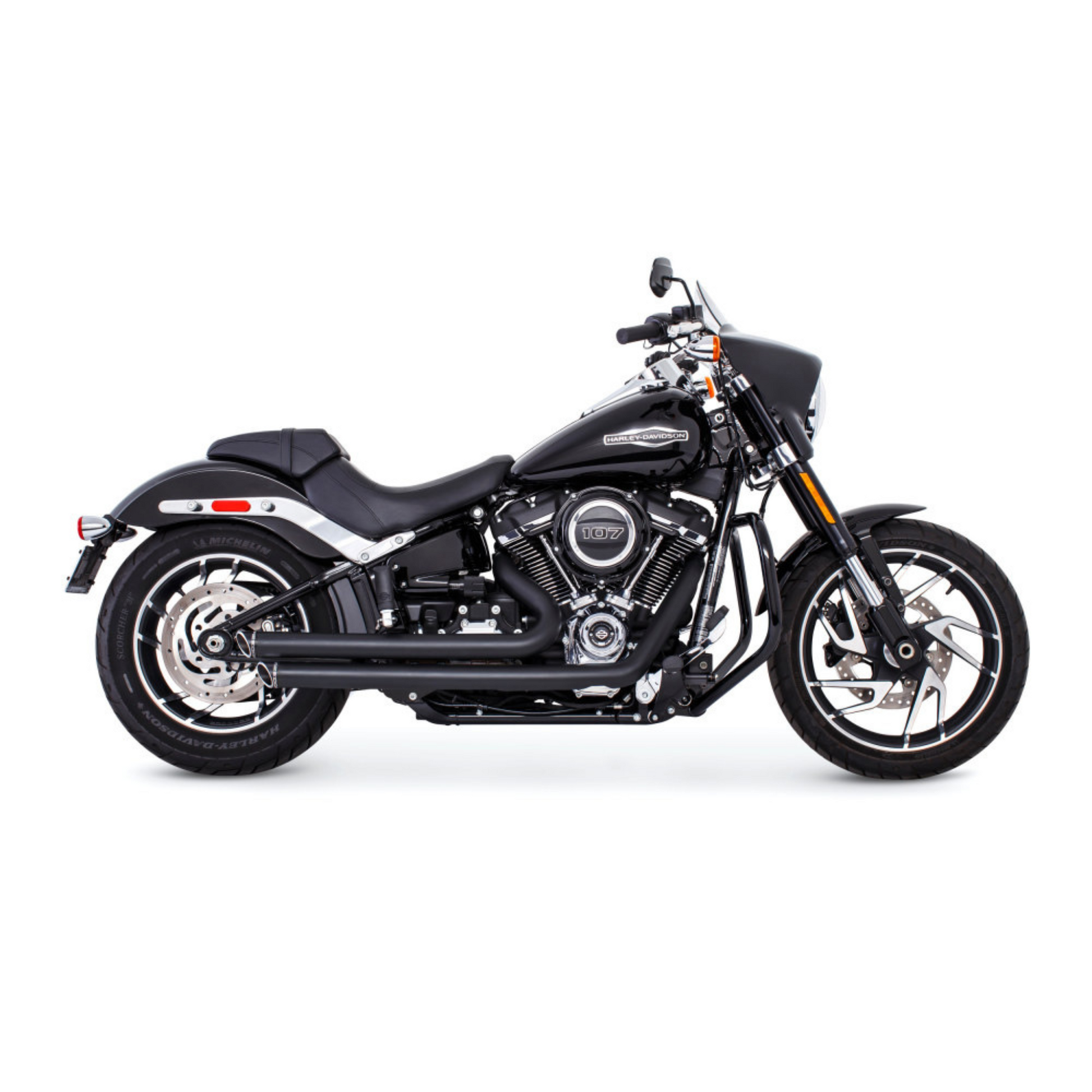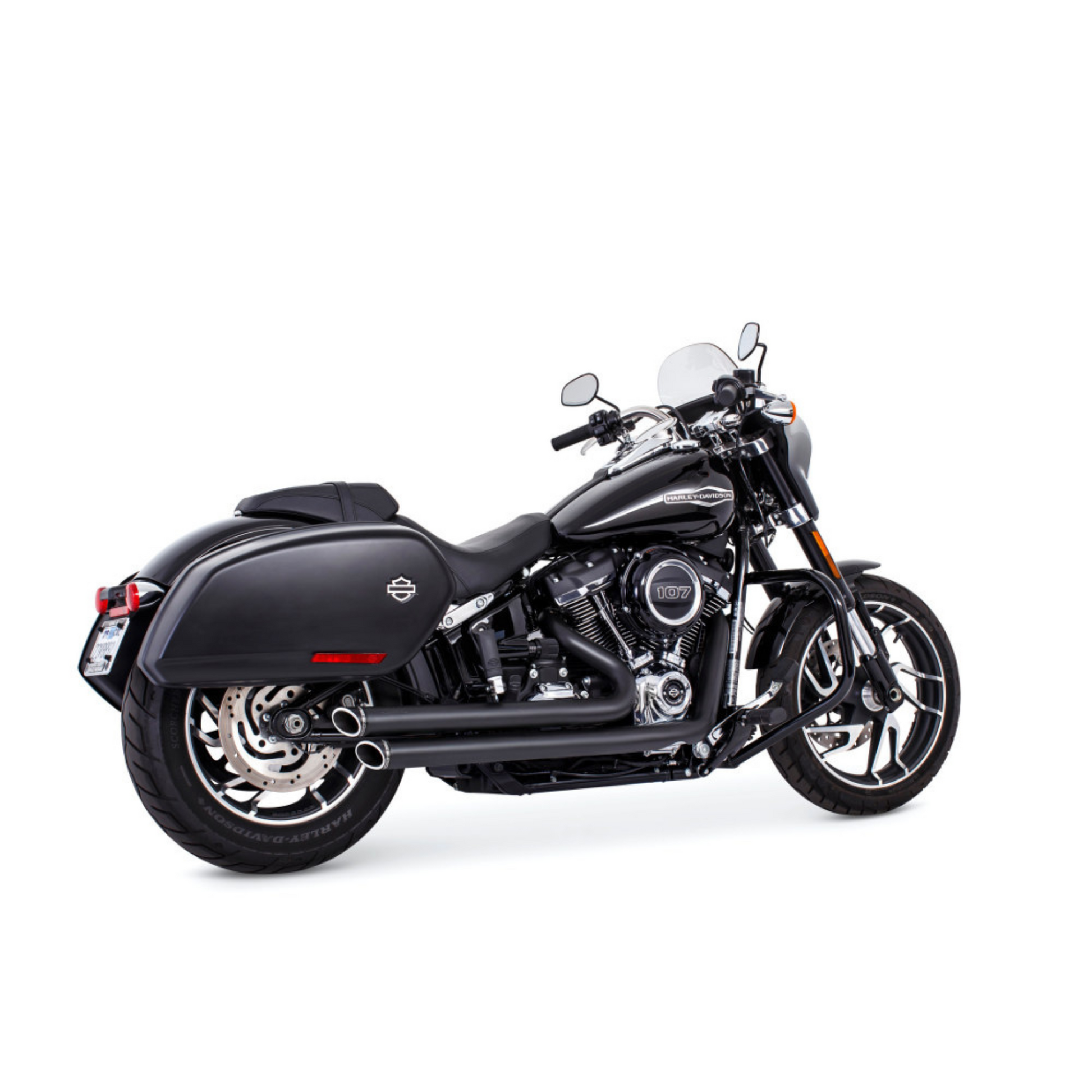 Freedom Performance - Independence Staggered Slash Exhaust – Black with Black End Caps. Fits Softail 2018up.