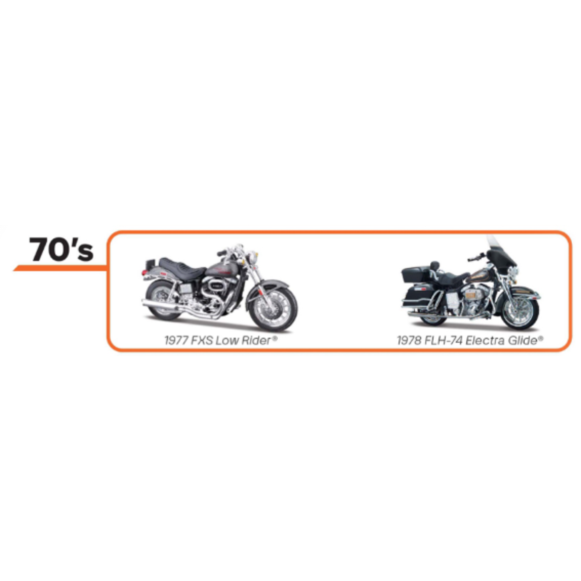 Harley-Davidson® 1:18 Motorcycle Duo Pack - 1970'S - 1977 FXS Low Rider & 1978 FLH-74 Electra Glide