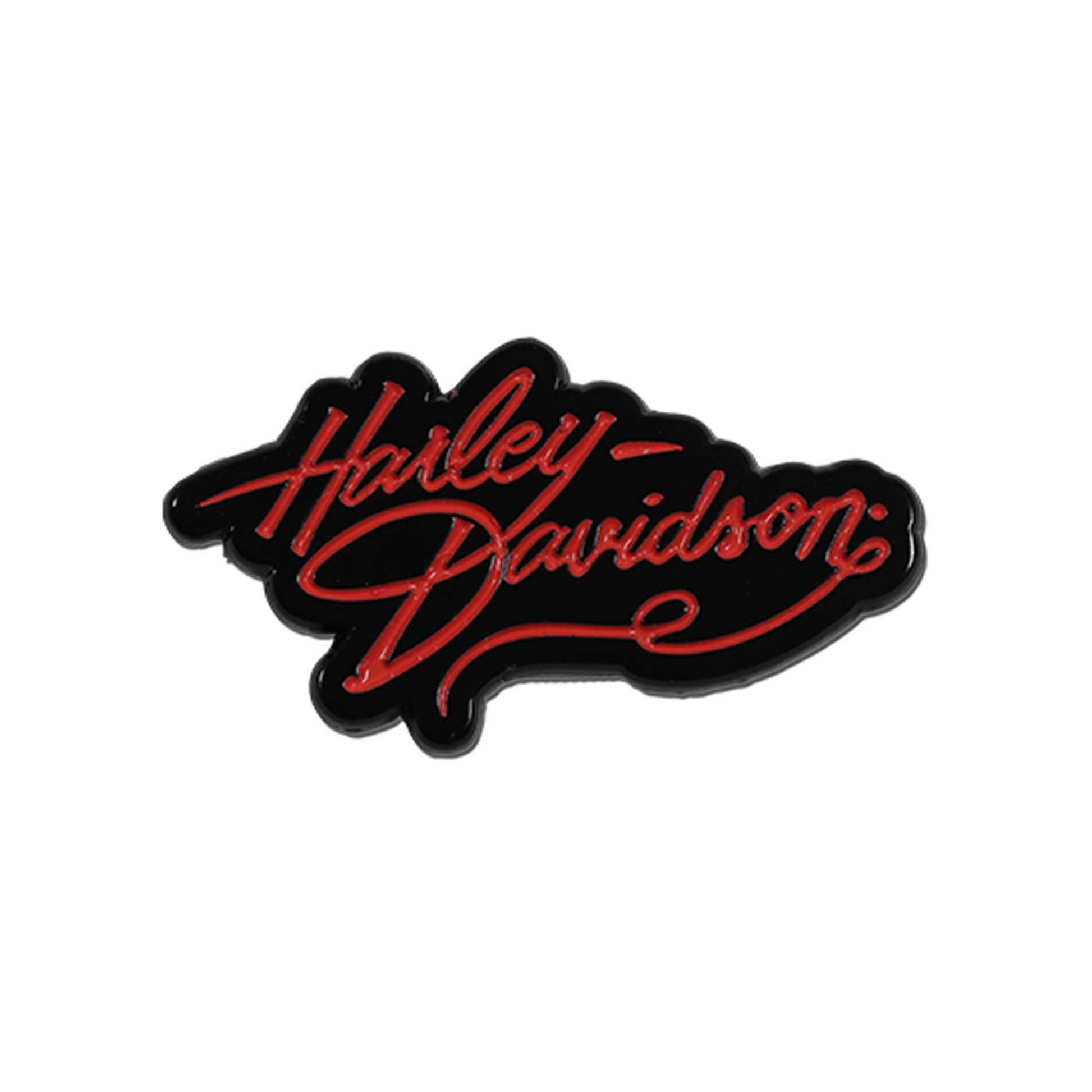 Harley-Davidson® 1.25 inch Harley Gal Text Metal Pin - Gloss Black/Pink Finish