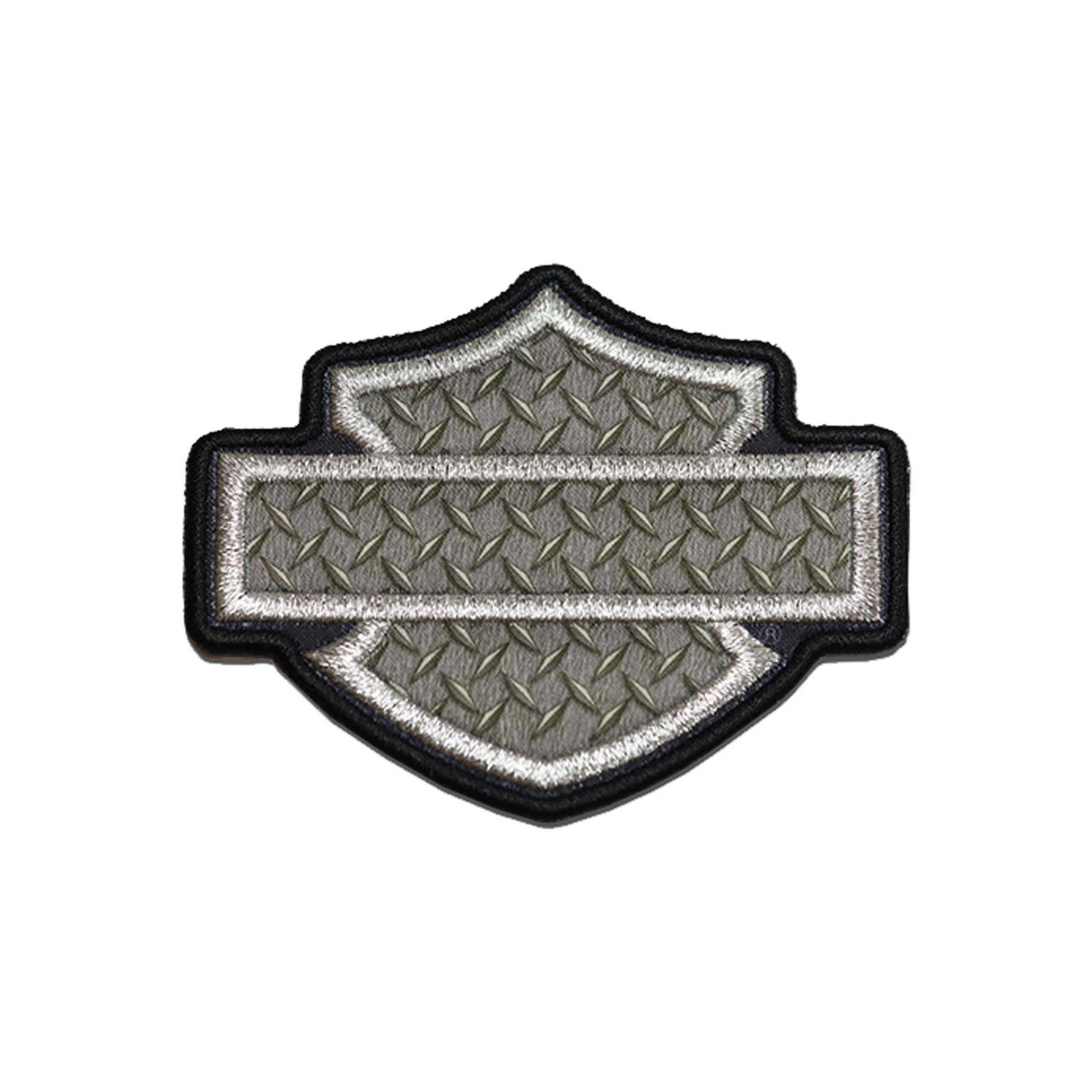 +Awesome iconic Bar & Shield logo with a diamond plate design. Sturdy emblem that will hold up ride after ride. Small size patch, Size: 3.5" x 2.88". Sew-on patch. Great looking patch to be sewn on your vest or jacket.