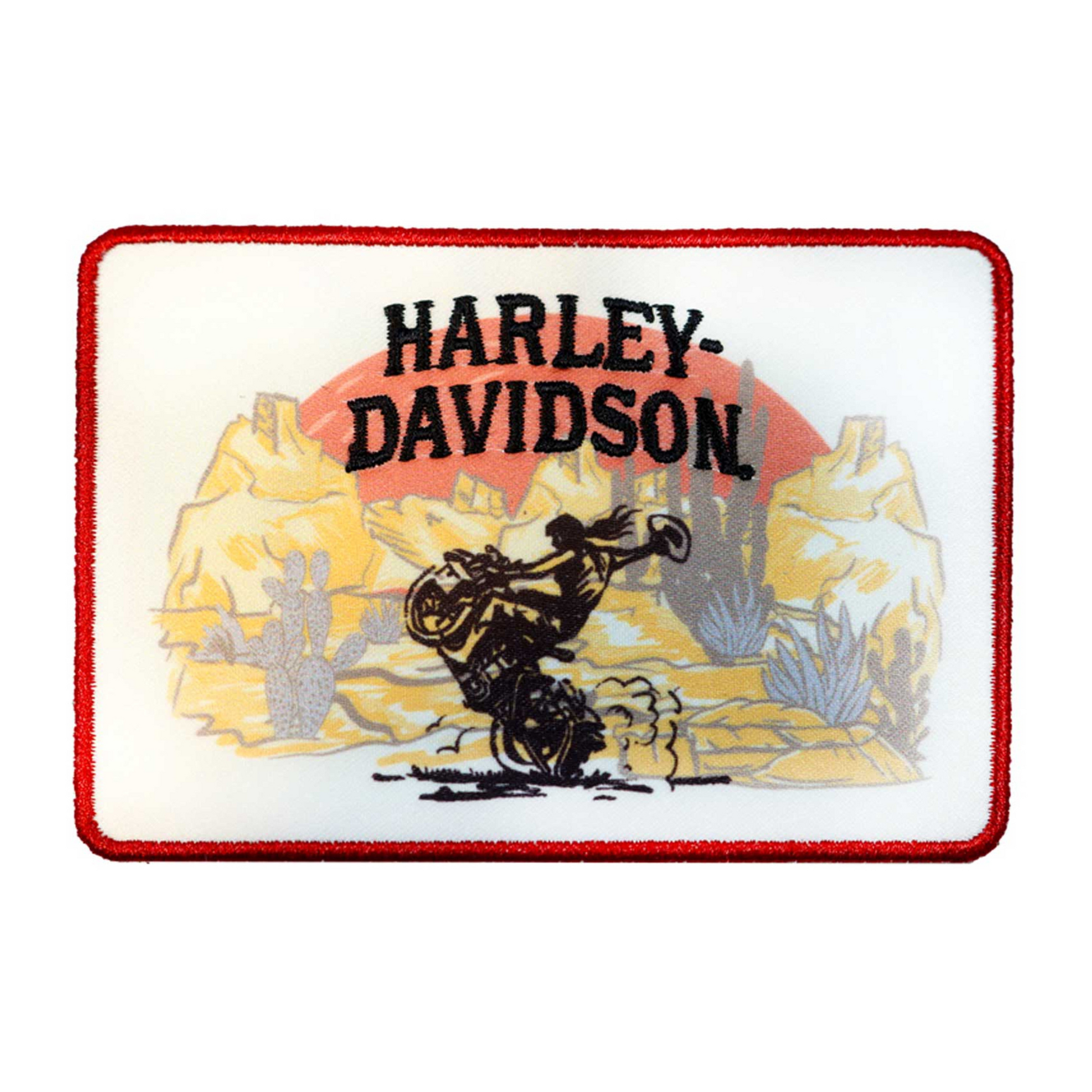 Harley-Davidson® 4 in. Embroidered Desert Rodeo Emblem Sew-On Patch - White