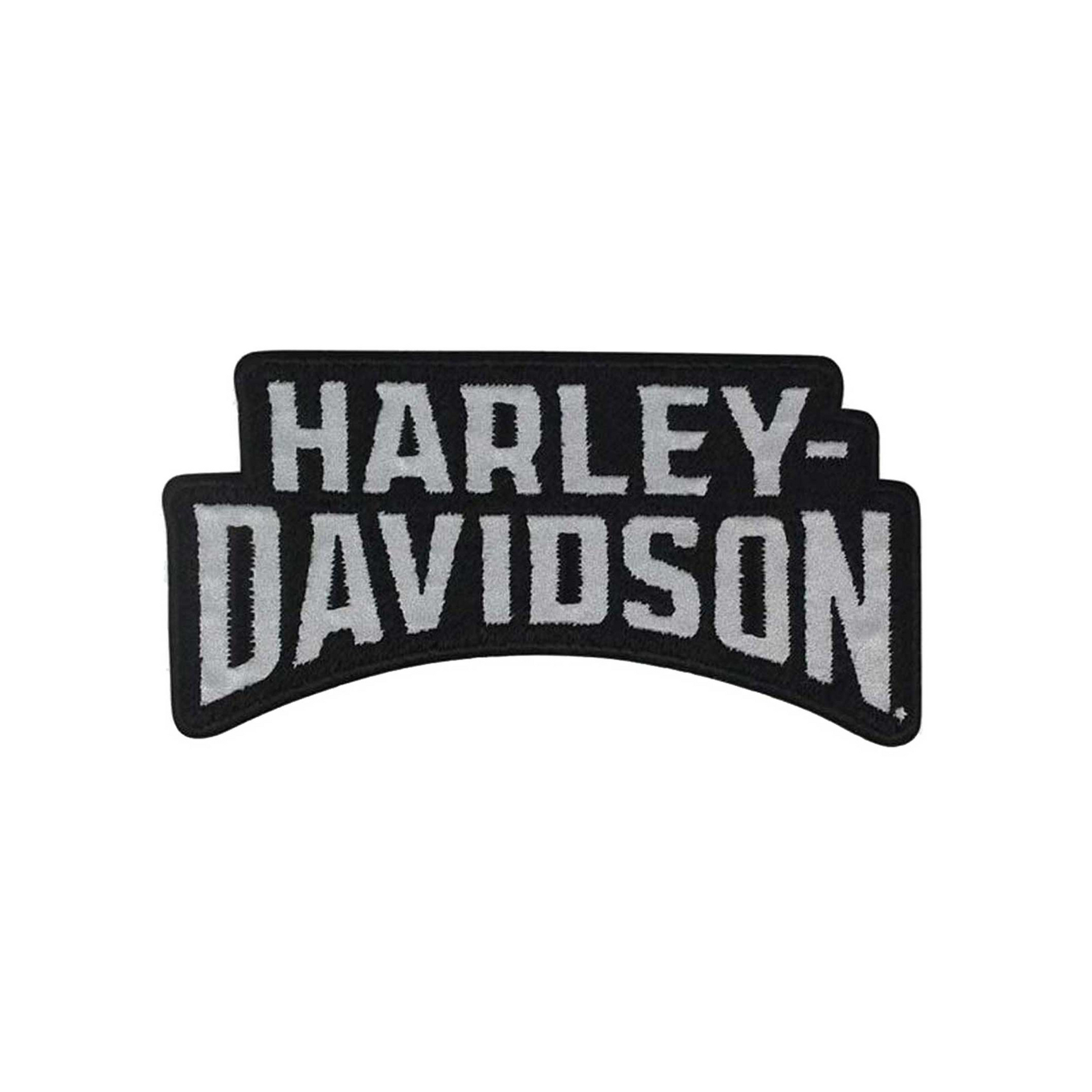 +High-quality embroidered emblem with awesome reflective Harley-Davidson® script. Sturdy black woven trim that will hold up ride after ride. Small size patch, Size: 4" x 2". Sew-on patch. Great looking patch to be sewn on your vest or jacket.
