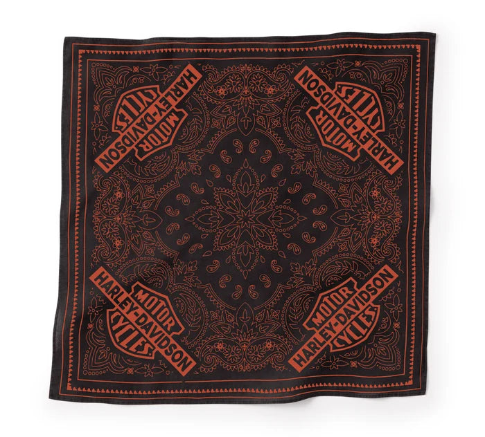 +Timeless style is retooled on our Bar & Shield Classic Bandana. Made from breathable cotton and traditionally sized. Wear it to soak up sweat and provide a cushion under your helmet while you ride. Finished with our most iconic graphics for a look that’s 100% Harley-Davidson.