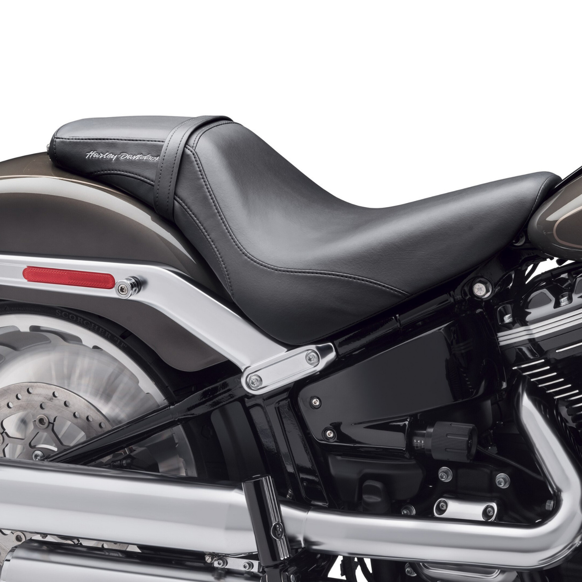 Clean smooth covers, subtle top-stitching, and a frame-hugging profile add up to a statement only Harley could create. The low design delivers a reduced seat height that is ideal for riders that want the shortest possible reach to the ground and the long and lean shape allows tall riders to move back from the hand and foot controls without sitting higher on the bike.