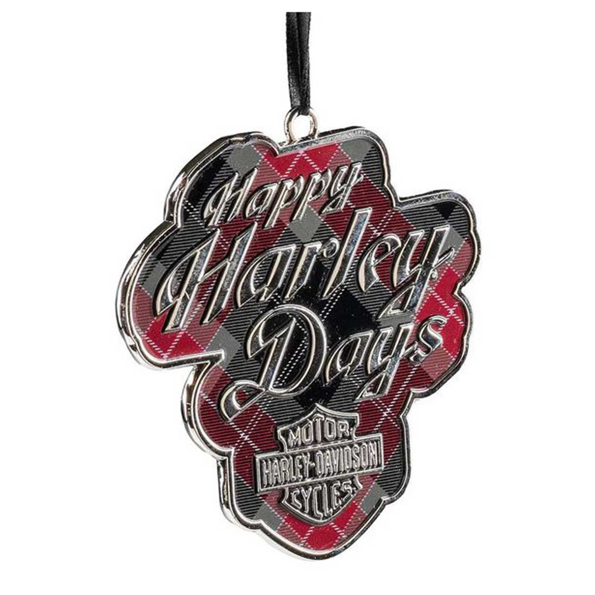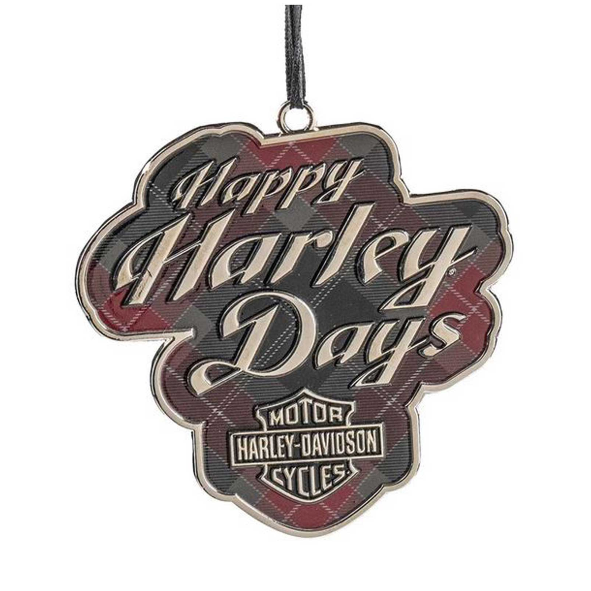 Harley-Davidson® Holiday Bar & Shield Plaid Pewter Christmas Tree Ornament