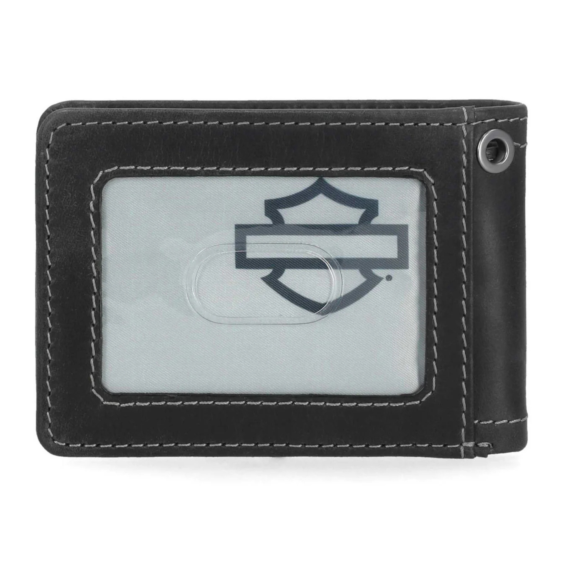 Harley-Davidson® Men's Willie G Skull Stitch Front Pocket Leather Wallet - Black