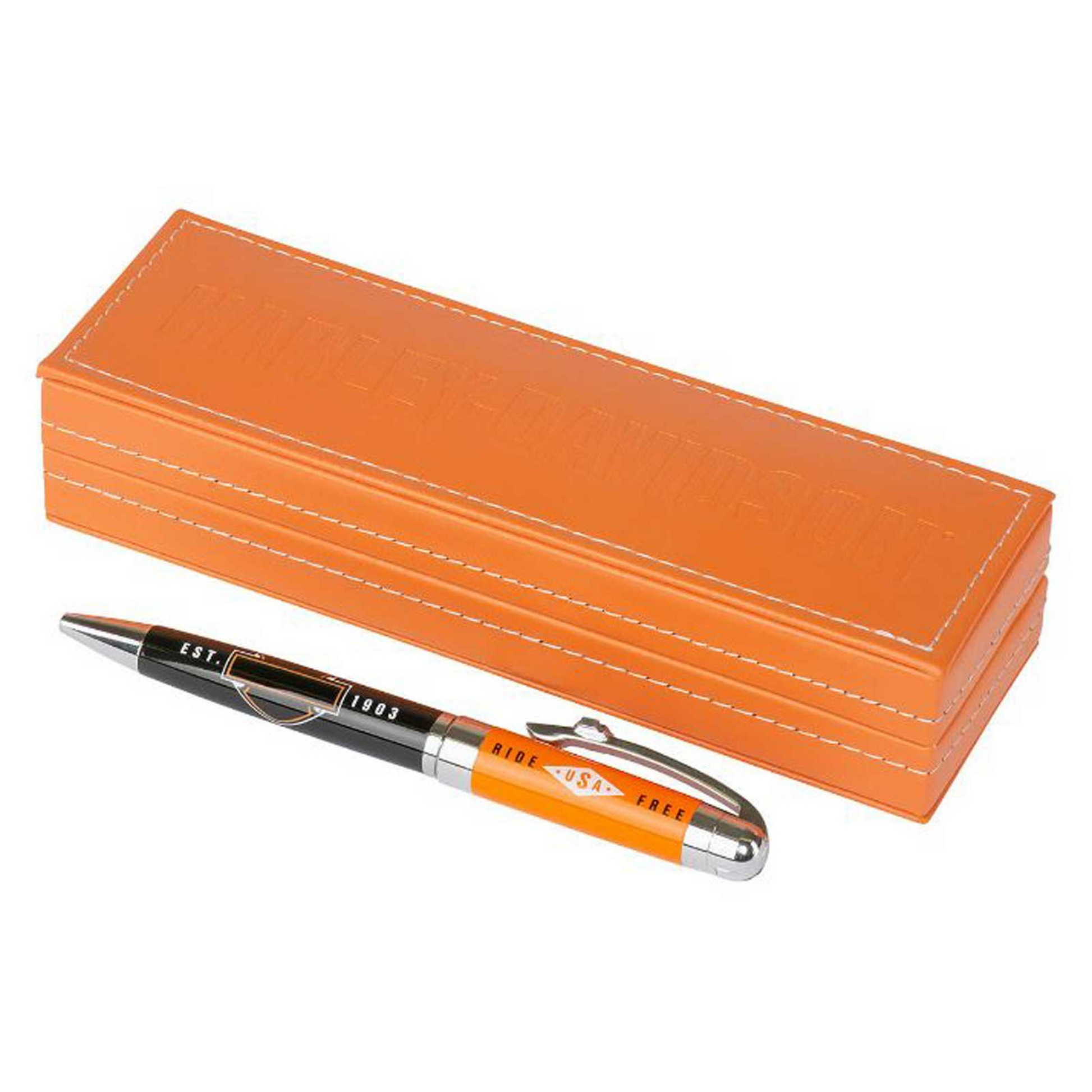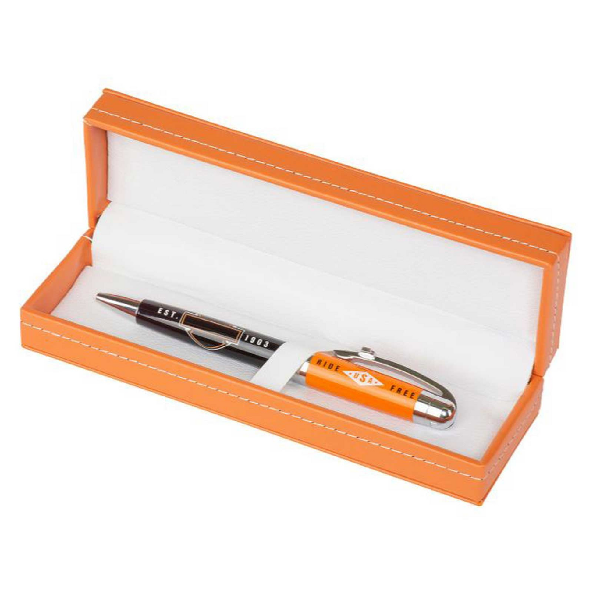 Harley-Davidson® Ride Free Black Ink Pen w/ Orange Gift Box - Orange