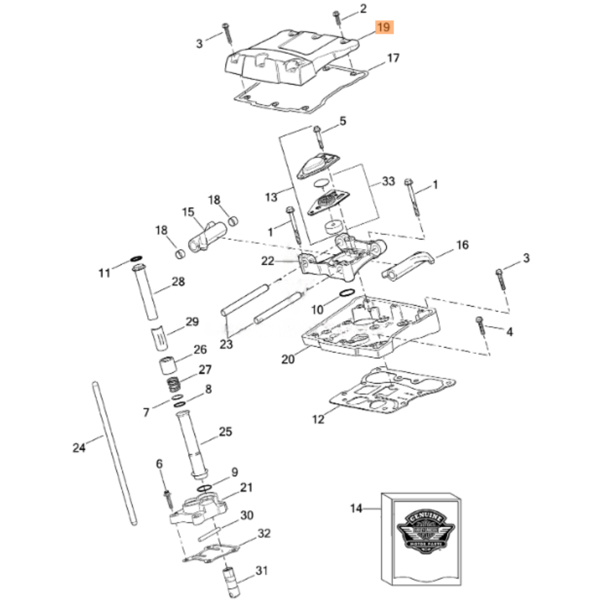 Original equipment top rocker cover polished from Twin Cam Models 88" - 96" - 103"