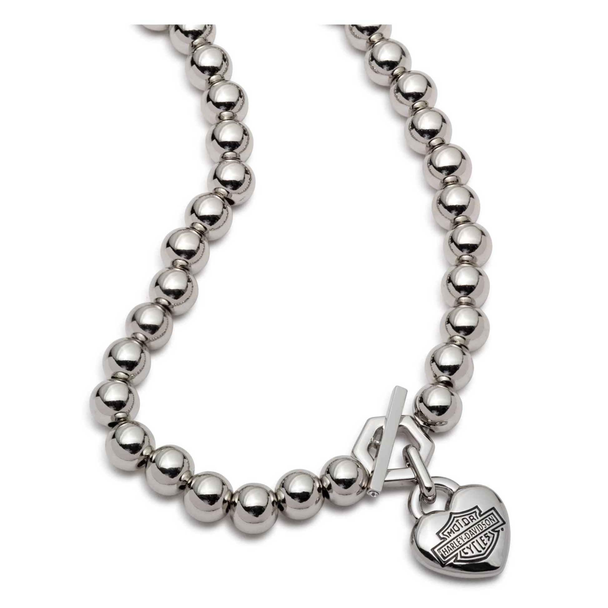Harley-Davidson® Women's 16 in. Bar & Shield Heart Beaded Toggle Necklace - Silver