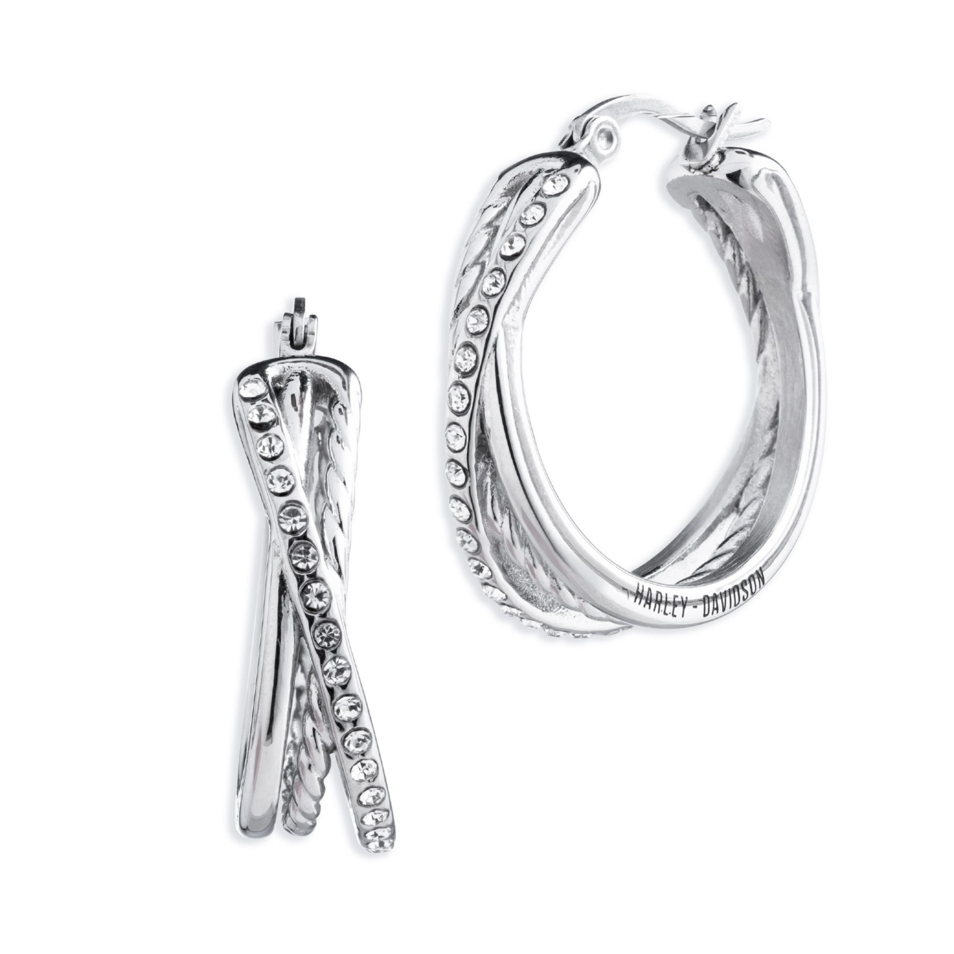 Harley-Davidson® Women's H-D Script Bling Twisted Click-It Hoop Pave Earrings