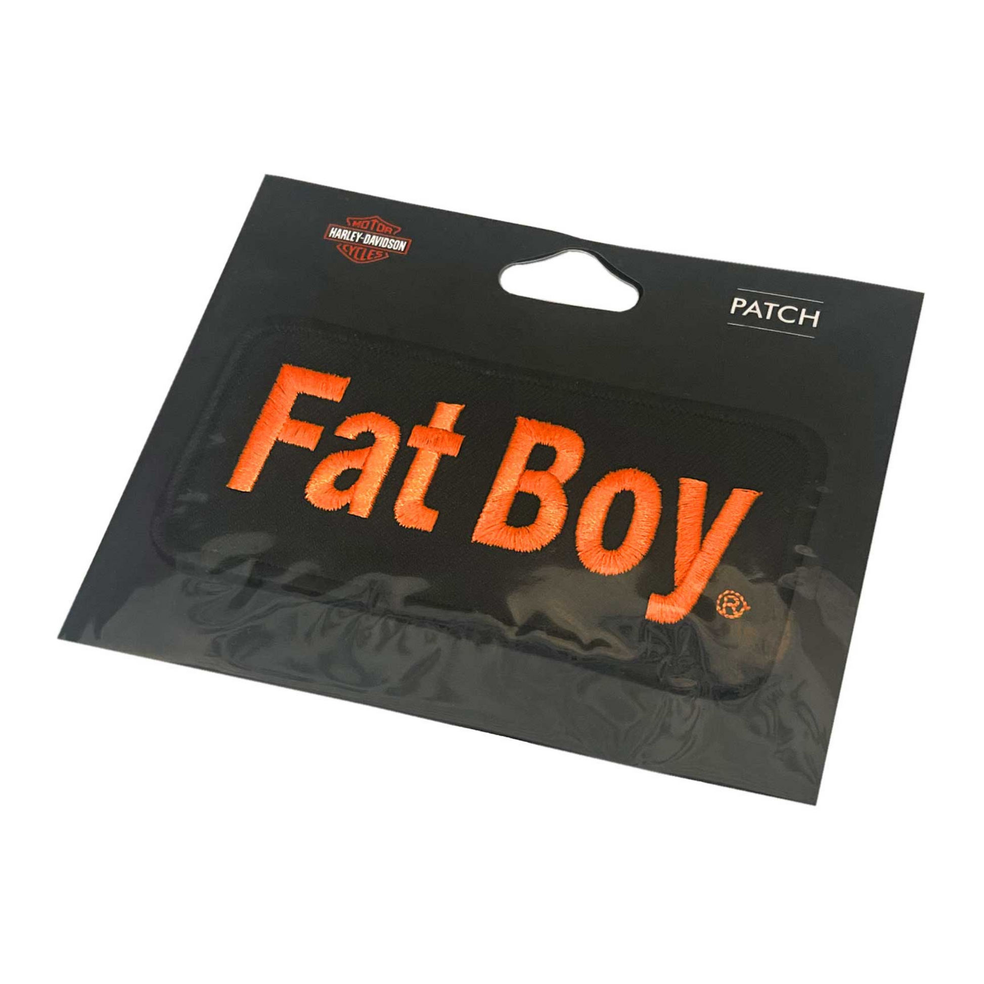 Harley-Davidson® 4 in. Embroidered Fat Boy Emblem Sew-On Patch - Black/Orange