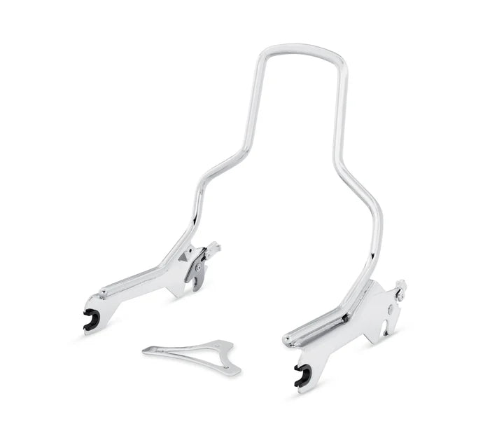 A sissy bar and passenger backrest pad is the starting point for building a complete touring machine. The backrest adds long-range comfort and support and provides a feeling of confidence and control for the passenger. HoldFast™ One-Piece Uprights feature an exclusive latch system that permits the backrest to be installed or removed in seconds to add versatility to your ride. The HoldFast sissy bar upright simply slips into position on the docking points, and the fingertip latches are clicked into position for a positive lock.